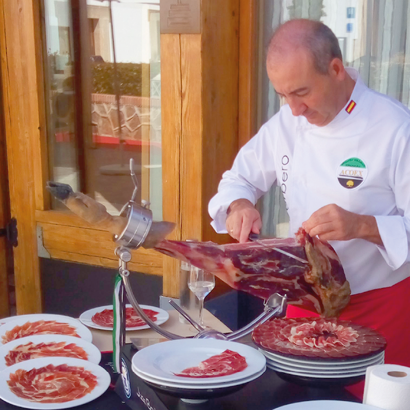 Domino la técnica del corte de jamón para resaltar todo su sabor y textura.