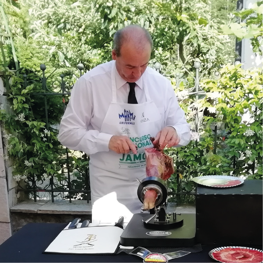 Soy Juan Antonio Barbero Peral, cortador profesional de jamón con casi 40 años de experiencia en el sector de la hostelería.