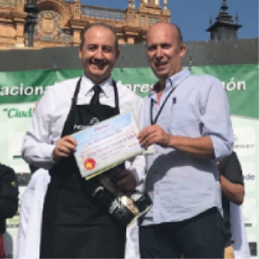 En 2017 participé en mi primer concurso de corte de jamón, donde obtuve mi primer premio y el galardón al plato creativo en Fuente del Maestre (Badajoz).
